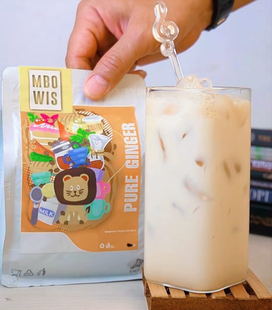 • Ambil gelas saji ,masukkan es batu tuang fresh milk, tuang larutan pure ginger